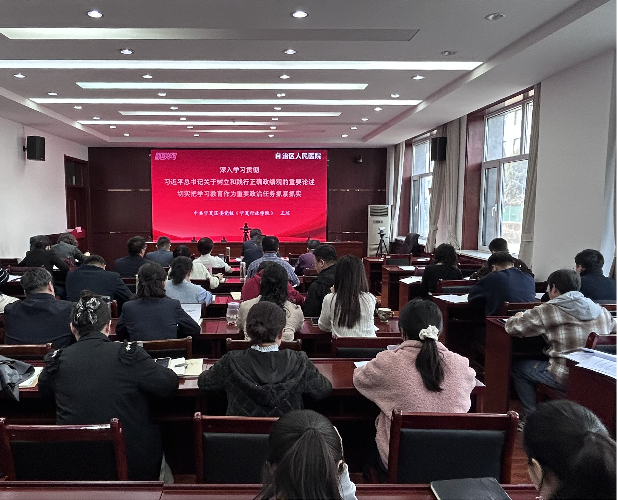 强认识,筑牢思想根基。邀请自治区党校副校长王琼教授,以视频联动方式为局机关、直属各单位党员干部作专题辅导,深刻阐释正确政绩观的科学内涵和实践要求。以党支部领学促学的方式,深入学习《习近平关于树立和践行正确政绩观论述摘编》、习近平总书记考察宁夏时的重要讲话精神、习近平总书记关于健康中国建设重要论述以及自治区党委有关会议精神,集中观看了全国两会相关视频资料,教育引导党员干部深刻领悟“两个确立”的决定性意义,增强“四个意识”、坚定“四个自信”、做到“两个维护”,从思想深处解决好“政绩为谁而树”的根本问题。
