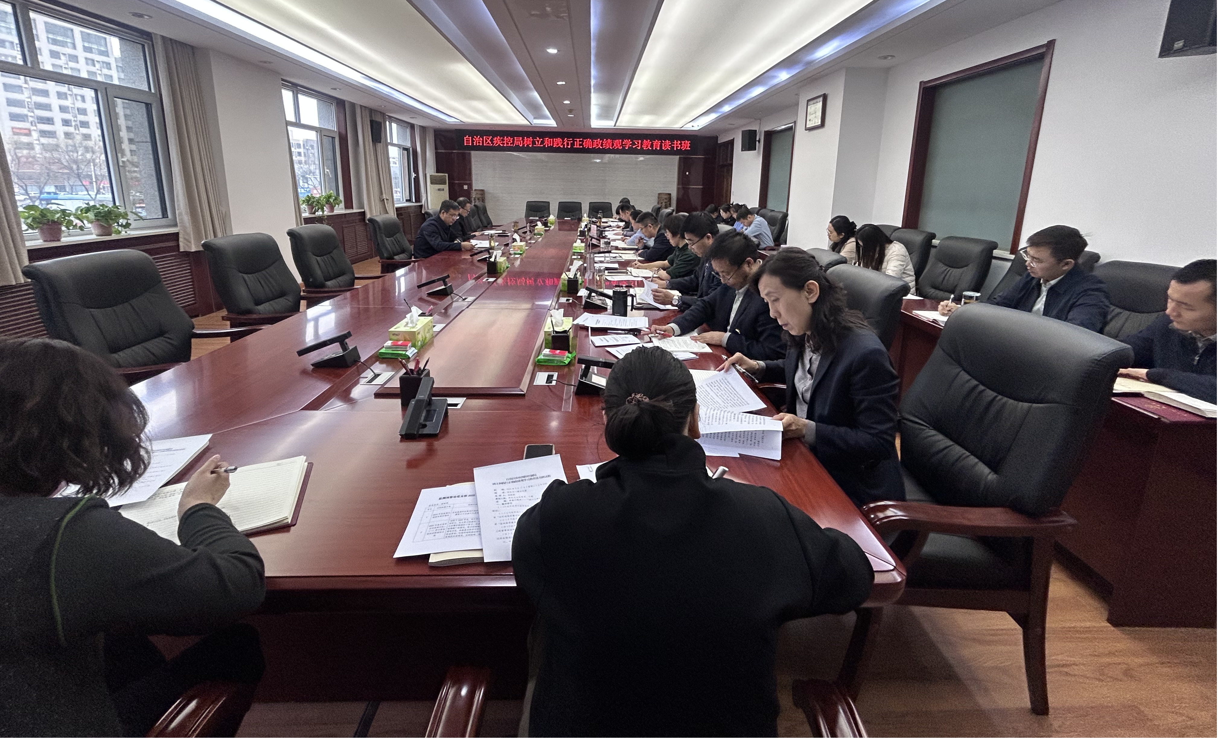 为深入学习贯彻习近平总书记关于树立和践行正确政绩观的重要论述,认真落实自治区层面树立和践行正确政绩观学习教育工作部署要求,3月16日至18日,自治区疾病预防控制局举办树立和践行正确政绩观学习教育读书班,局机关全体党员、干部参加学习,直属各单位党员干部通过视频方式同步参加专题辅导。读书班主题鲜明、安排紧凑、内容充实,紧扣“政绩为谁而树”“树什么样的政绩”“靠什么树政绩”“守公卫初心,创务实政绩”4个专题,采取“专题辅导+集中学习+个人自学+研讨交流”相结合的方式进行,引导党员干部带着问题学、深入思考学、联系实际学。