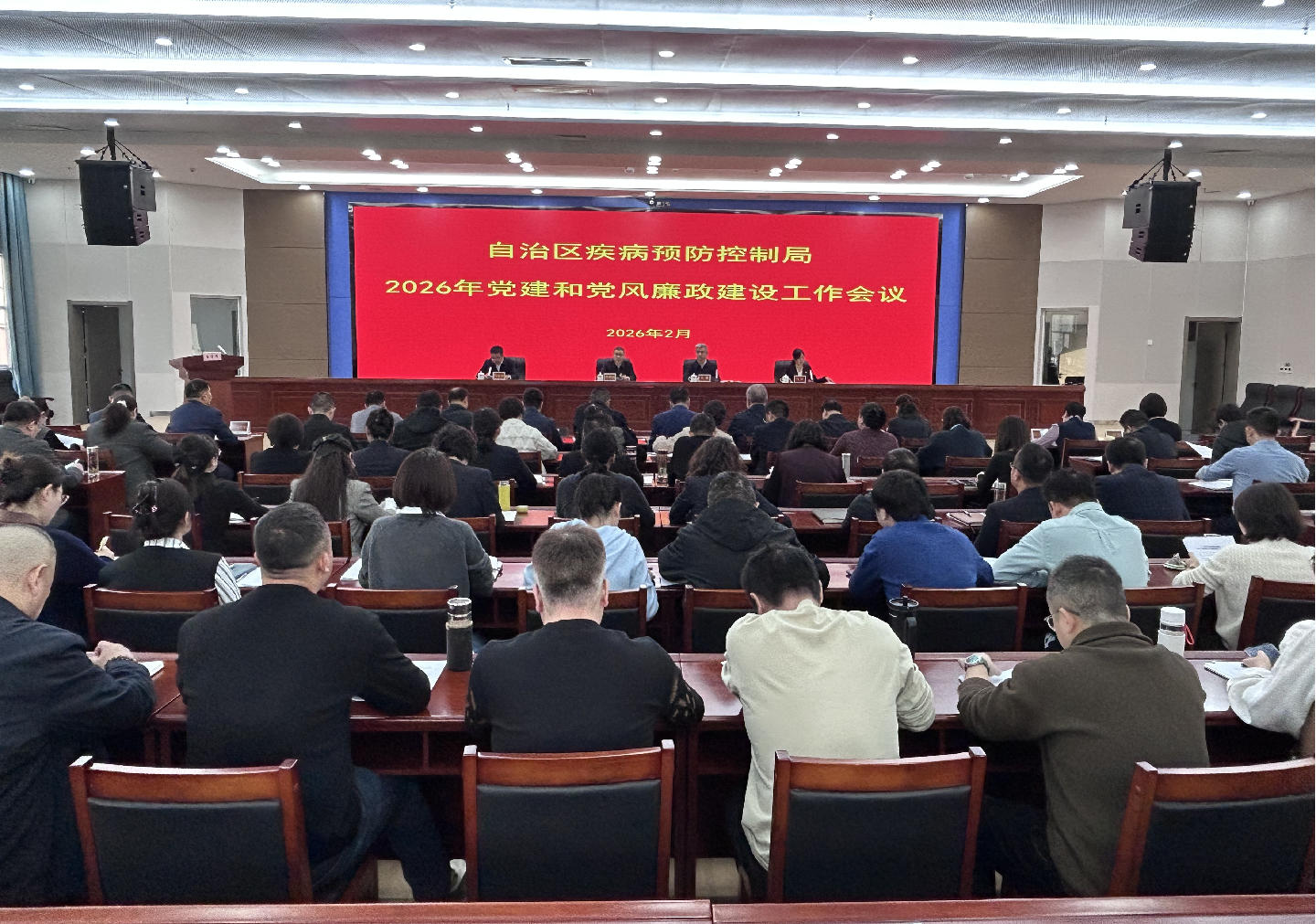2月28日上午,自治区疾病预防控制局召开2026年党建和党风廉政建设工作会议。会议深入学习贯彻党的二十大和二十届历次全会精神,全面落实习近平总书记关于党的建设的重要思想、党的自我革命的重要思想,按照党中央、中央纪委决策部署,自治区党委、纪委工作要求,总结回顾2025年工作、安排部署2026年重点任务,抽选3个基层党组织围绕党建和党风廉政建设重点工作落实、标准化规范化建设、“四强”党支部创建进行交流发言,动员全系统以彻底的自我革命精神,为“十五五”疾控事业高质量发展开好局、起好步提供坚强政治保障。